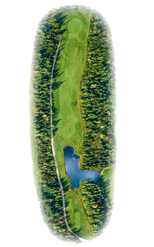 To play this Par 5 effectively, aim your drive towards the right side of the fairway to avoid the water hazard on the left. For your second shot, consider your distance and choose a club that allows a clear approach to the green, ideally from the center of the fairway to minimize tree interference. When approaching the green, favor the left side to set up for a better angle and avoid any potential obstacles on the right.